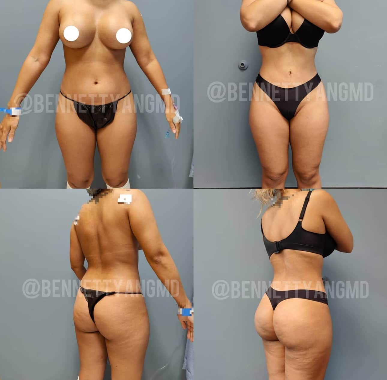 Combining a BBL (Brazilian butt lift)  with fat transfer from your entire waist – hence Lipo 360 augments your body contours and buttocks using your own body fat. With BBL, Dr. Yang uses liposuction to remove fat around your entire torso region and then injects the fat into your hips and buttocks, creating a perky, fuller appearance. This helps to give alot of patients a more symmetric shape on the top and bottom.