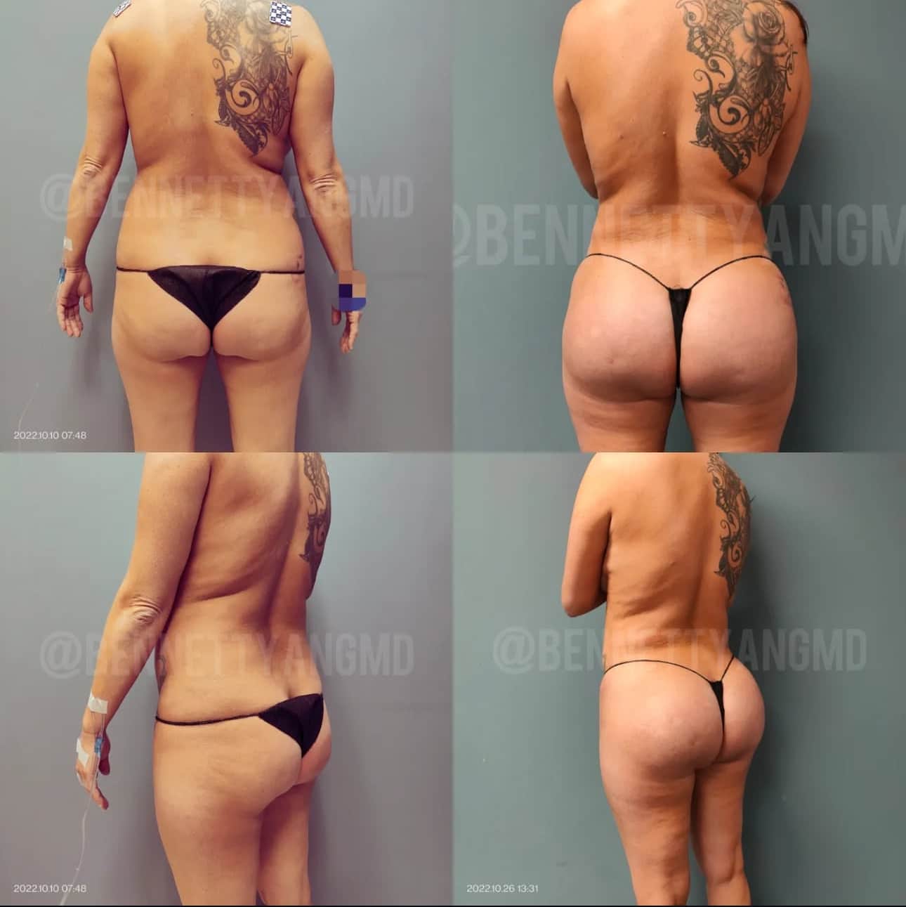 Combining a BBL (Brazilian butt lift)  with fat transfer from your entire waist – hence Lipo 360 augments your body contours and buttocks using your body fat. With BBL, Dr. Yang uses liposuction to remove fat from your entire torso region and then injects the fat into your hips and buttocks, creating a more perky and fuller appearance. This helps to give alot of patients a more symmetric shape on the top and bottom.