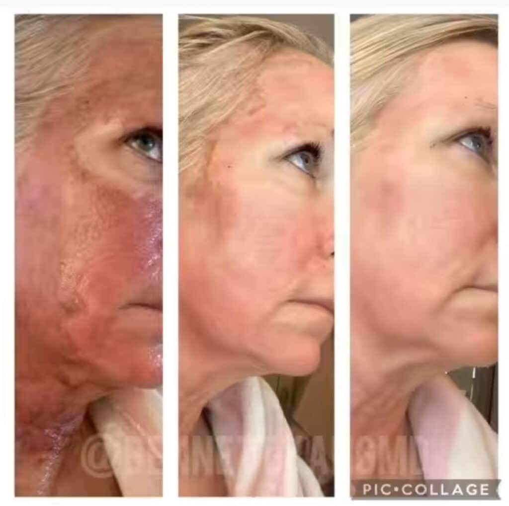 A chemical peel involves a solution that is applied to the face and exfoliates the damaged or dead skin cells, encouraging the growth of new, healthier skin. The depth and type of chemical peel used can vary depending on your skin concerns and desired results.